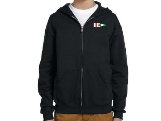 Youth Fleece Full-Zip Hooded Sweatshirt - Port and Starboard Custom Signal Flag Logo Embroidered Youth Sailing Attire Jerzees